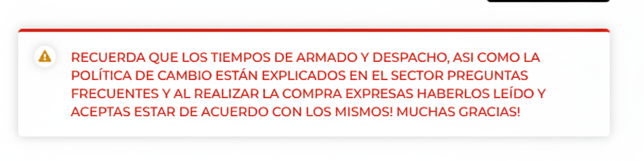 Al realizar una compra aceptas los terminos y condiciones aqui explicitados sobre los tiempos de armado y despacho.